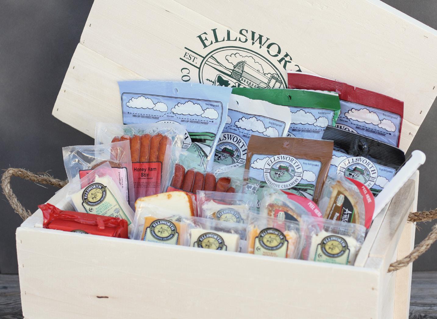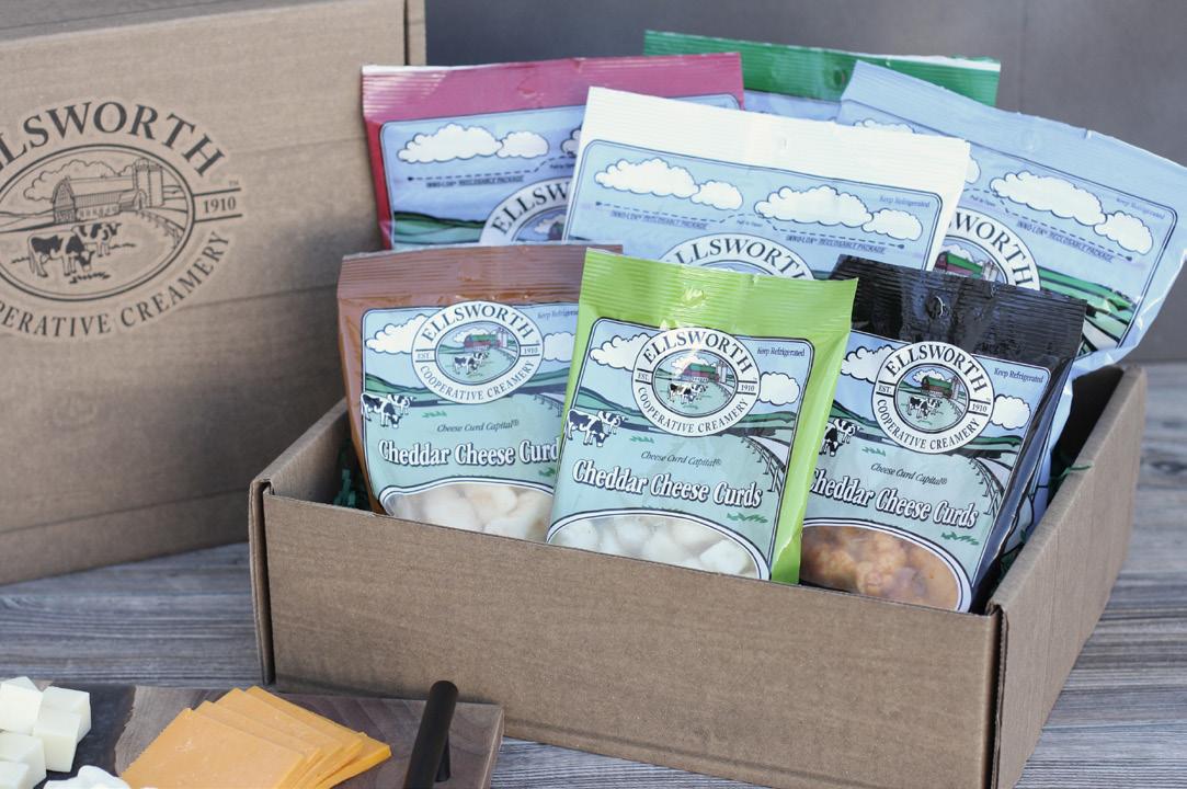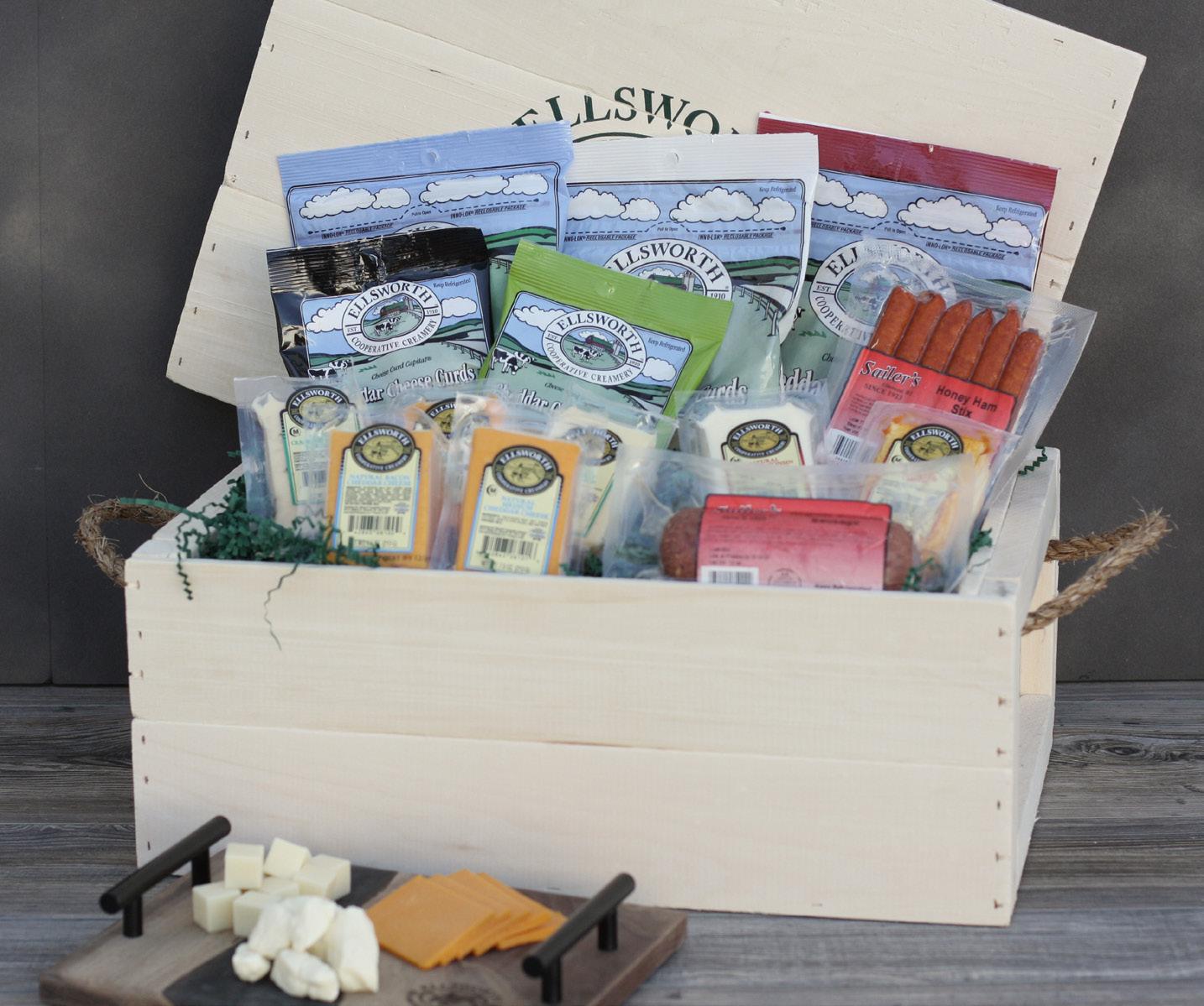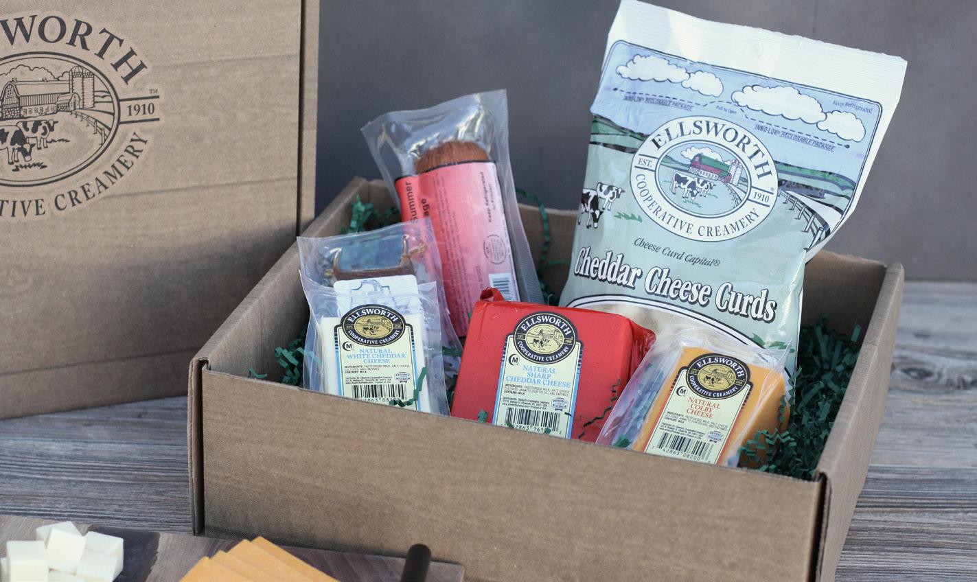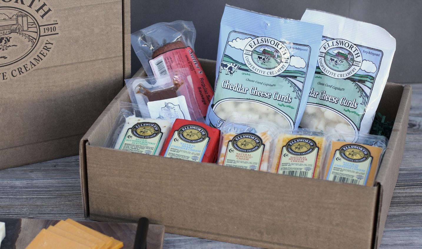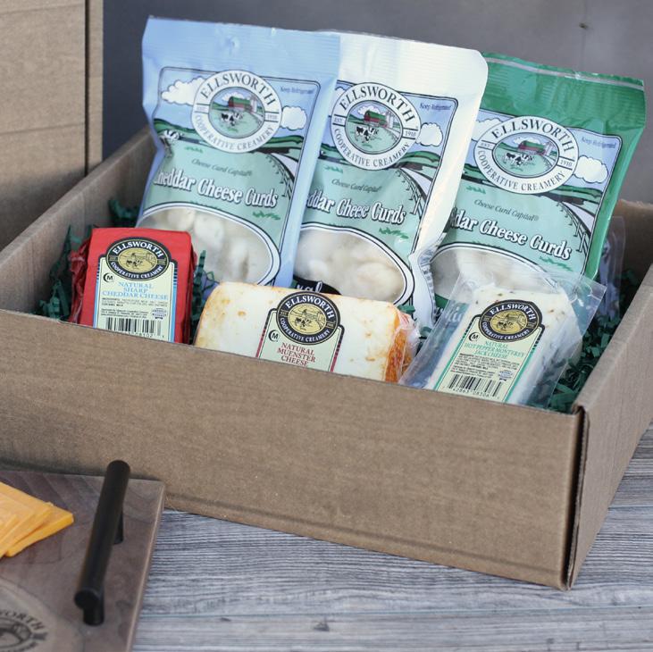 Includes Ellsworth Natural and Ranch Cheese Curds, Ellsworth Medium Cheddar, Ellsworth Sharp Cheddar, Ellsworth Montico, Ellsworth Hot Pepper Jack, Ellsworth Muenster, summer sausage, and Flo’s Fudge. $49