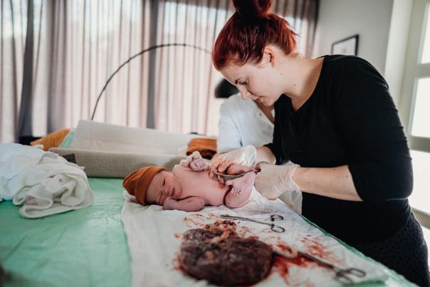 MPV’s, omdat de placenta dan eigenlijk nog helemaal niet toe is aan loslaten. De vraag is in dat geval op welke evidence wij ons handelen baseren’, aldus Yvon. ‘Onze eigen vroedvrouw-evidence toont aan dat hoe meer je vooraf aan de moeder ‘rommelt’, hoe meer bloed er aan het einde vloeit. Daarbij is ‘gewoon even wachten’ goed voor de moeder-kindhechting, net als voor de start van de borstvoeding.’ Hanna, eerstelijnsverloskundige in Alphen aan den Rijn, herkent die stellingname.