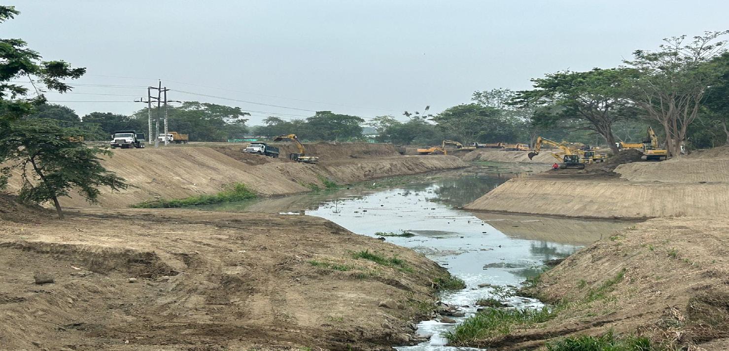 IVA) y un plazo de ejecución de 150 días. Se viene trabajando en los tramos que van del puente Plutarco Moreira hacia la desembocadura del canal de encauzamiento y desde ese punto hacia el puente El Olimpo.