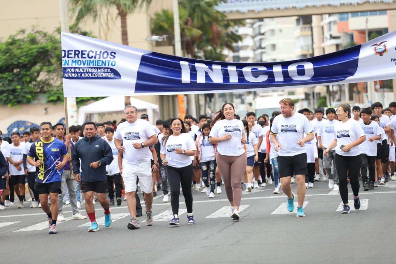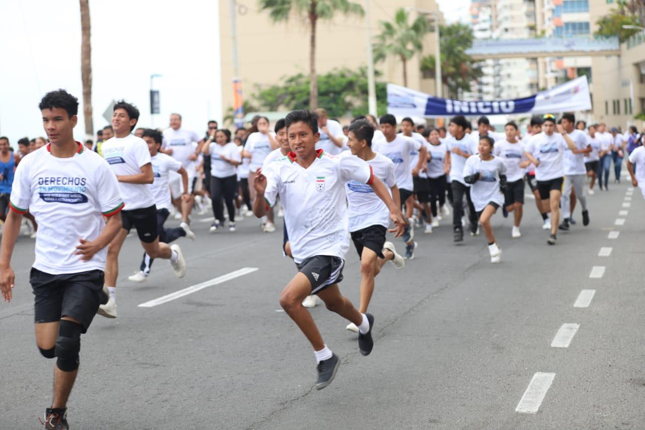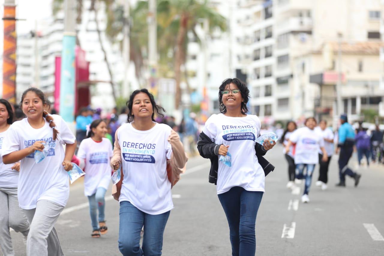 Esta competencia atlética y recreativa se enmarca en la campaña “Derechos con Dignidad”, liderada por el MIES, que contó con la participación de usuarios de los servicios de erradicación del trabajo infantil,