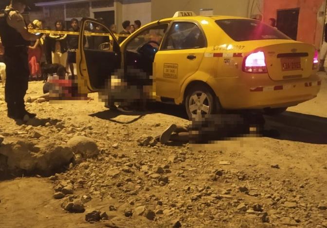 Dos de los sujetos quedaron en el piso de tierra, mientras que el otro quedó en la parte interior del taxi. Los cadáveres fueron trasladados hasta el anfiteatro de Santa Elena, en el balde de una camioneta de la Policía Judicial.