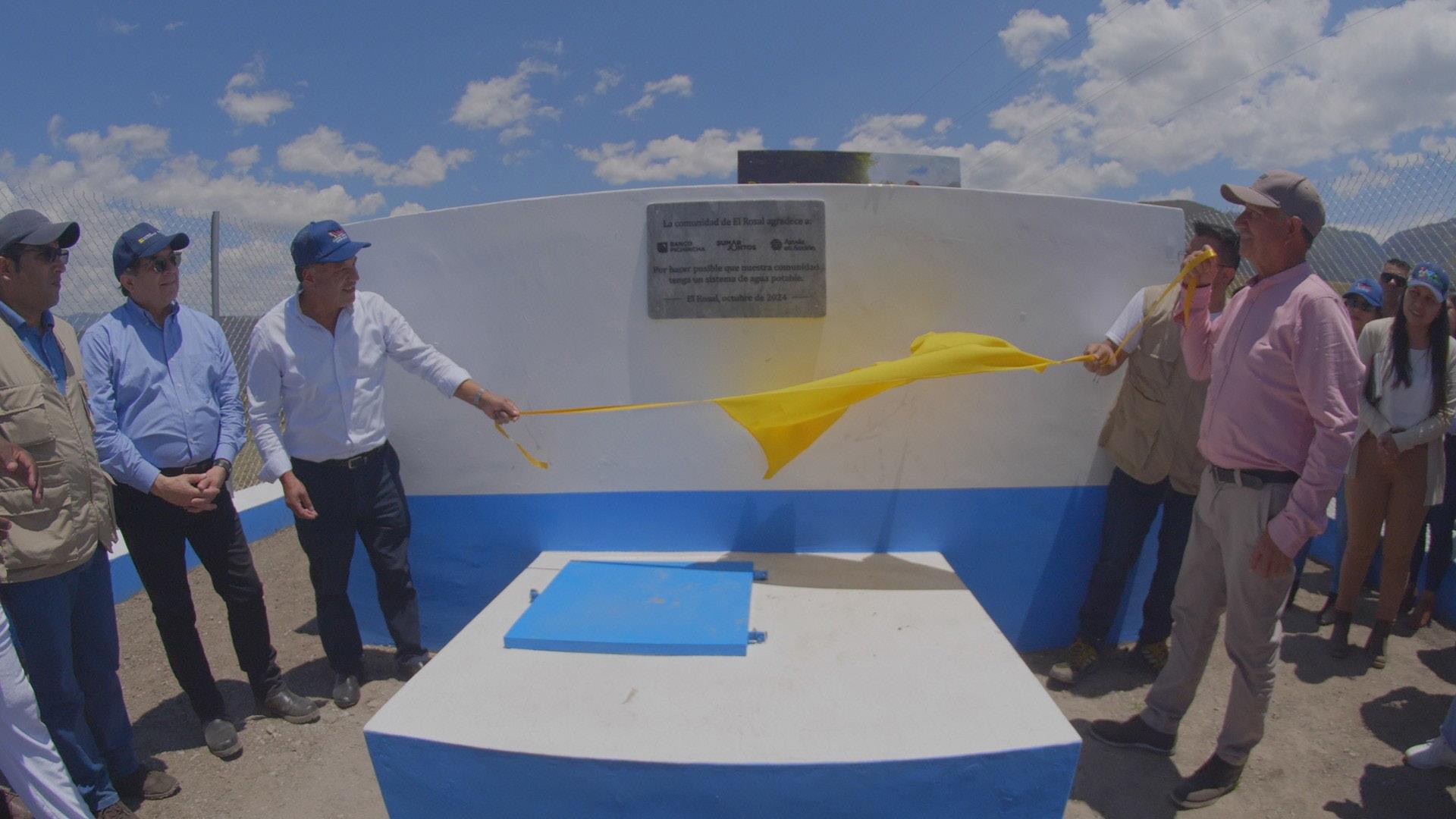 Más de 40 familias agricultoras de la comunidad de El Rosal, en el cantón Bolívar, Carchi, ahora cuentan con agua potable gracias a la planta entregada por la Iniciativa ‘Sumar Juntos’ de Banco Pichincha y la organización internacional ‘Ayuda en Acción’ Ecuador.