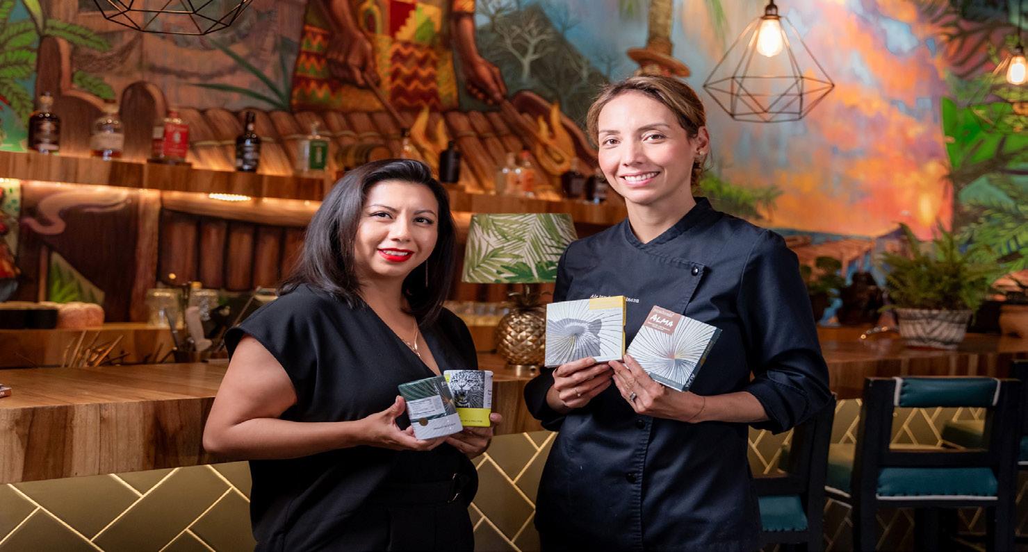 ● La marca, impulsada por la chef ecuatoriana, Alejandra Espinoza, y Carmen Tibán, CEO del Grupo Woptrading Internacional, contará con 14 productos elaborados a base de cacao fino de aroma y macambo, ingredientes ancestrales.