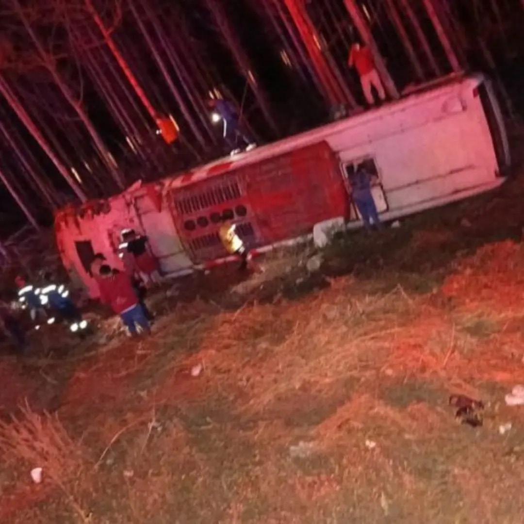 El accidente dejó al menos 15 personas heridas, aunque afortunadamente no se han reportado fallecidos. El bus, identificado con el número 25, perdió el control y terminó volcándose para luego deslizarse hacia una cuneta.