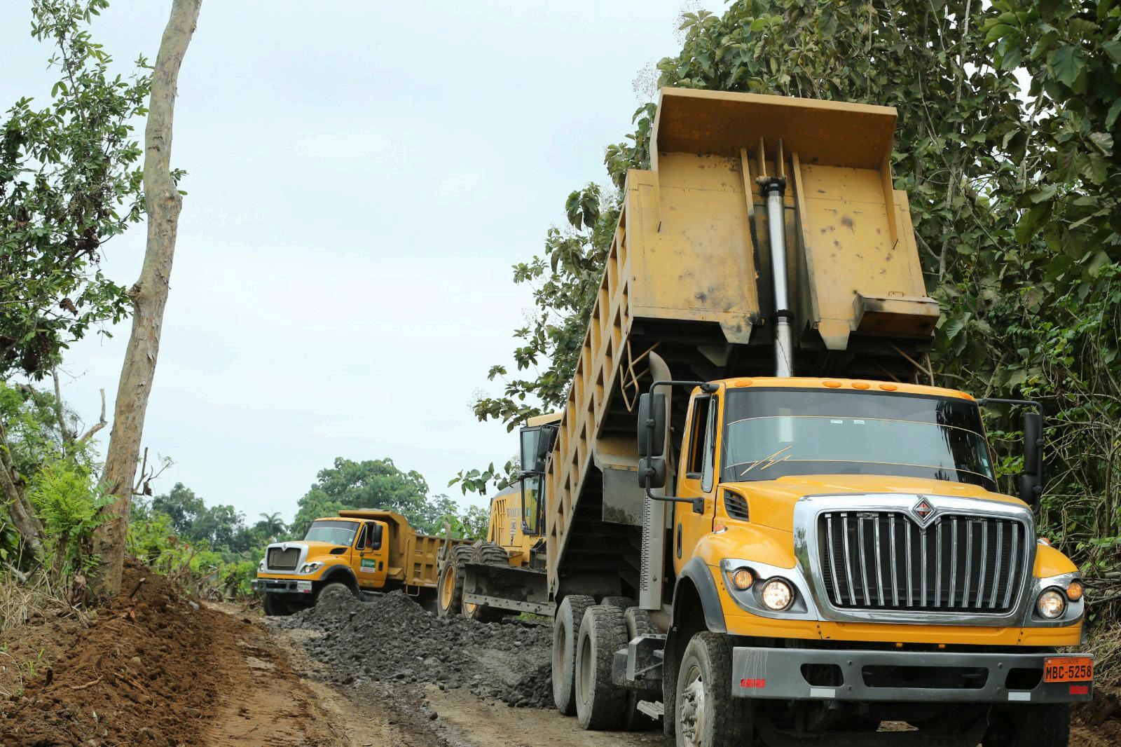 La rehabilitación de esta vía, de 5.4 kilómetros, tiene un avance de 70%. Se tiene previsto colocar 4.257 metros cúbicos de material de mejoramiento, que es transportado desde una de las canteras de la provincia de