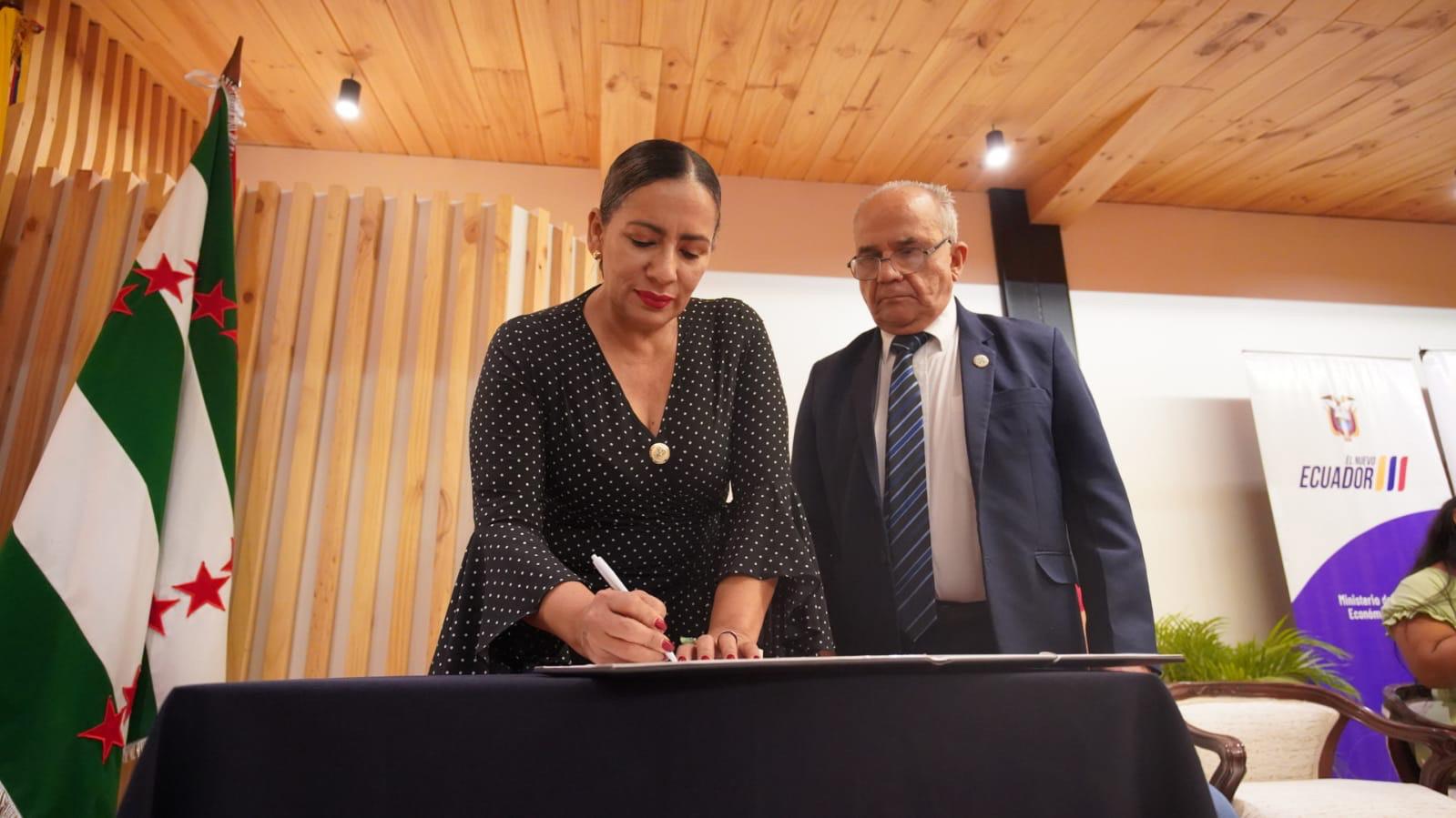 el alcalde de Salinas, Dennis Córdova, suscribieron dos convenios de cooperación técnico - económica para la atención de grupos prioritarios y vulnerables de este cantón. Uno tendrá una inversión de cerca de USD 44 mil y permitirá atender a alrededor de 120 personas con discapacidad en la modalidad domiciliar; mientras que el otro es de alrededor de USD 10 mil y beneficiará con atención a 125 adultos mayores, con la modalidad espacios de socialización y encuentro.
