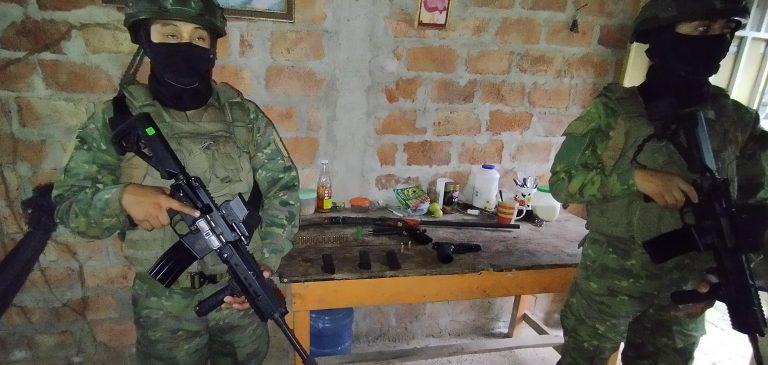 En el barrio San Antonio de Manta, provincia de Manabí, las Fuerzas Armadas realizaron un operativo de control de armas, municiones y explosivos que resultó en la detención de dos personas y el hallazgo de diversos elementos ilegales, informó la institución.