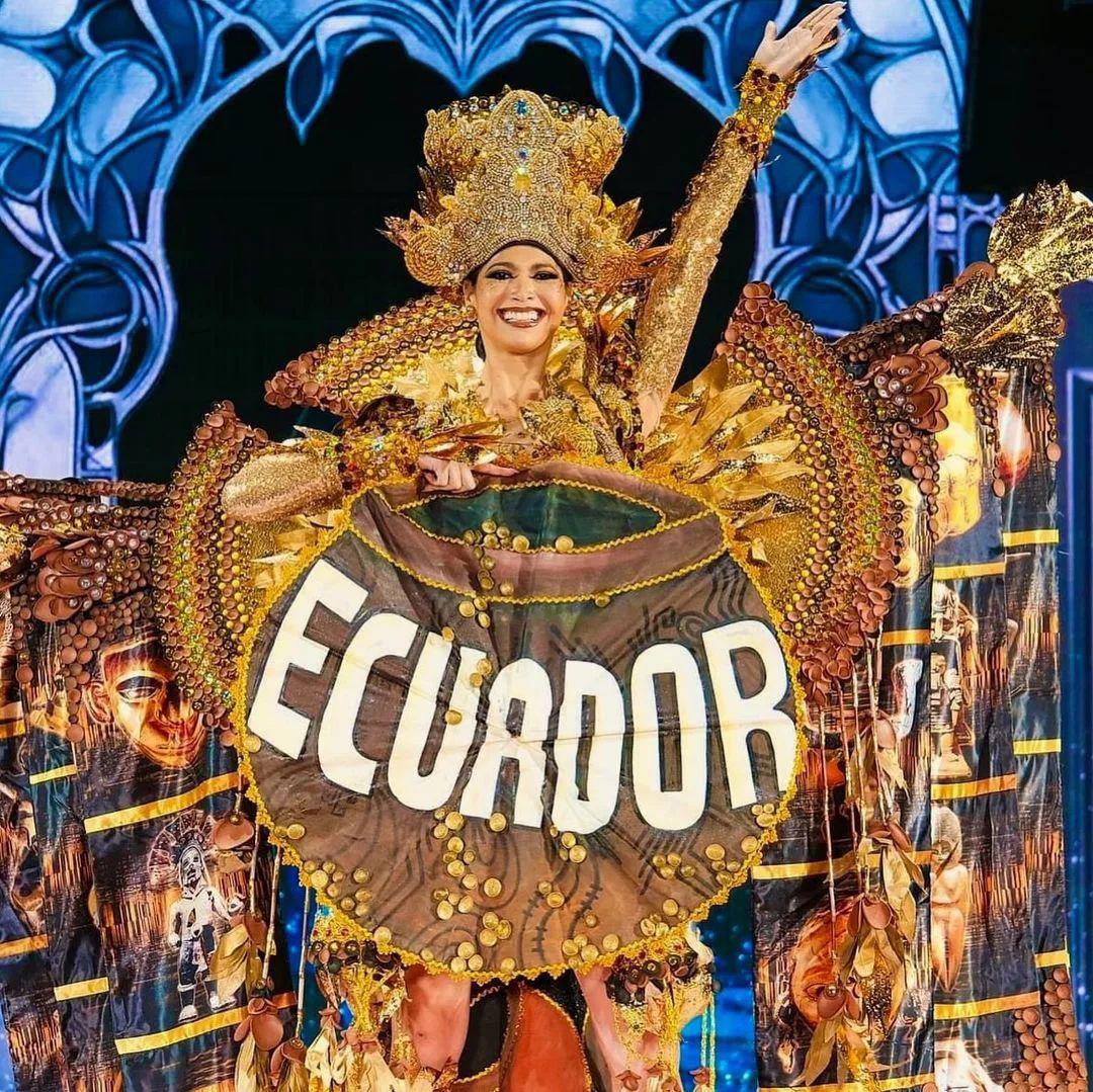 Este traje no solo destaca por su estética, sino que es un homenaje a la rica diversidad cultural del Ecuador, rindiendo tributo a más de 48 etnias y la herencia ancestral del país, simbolizando esta riqueza con una pieza que evoca la historia y la identidad ecuatoriana.