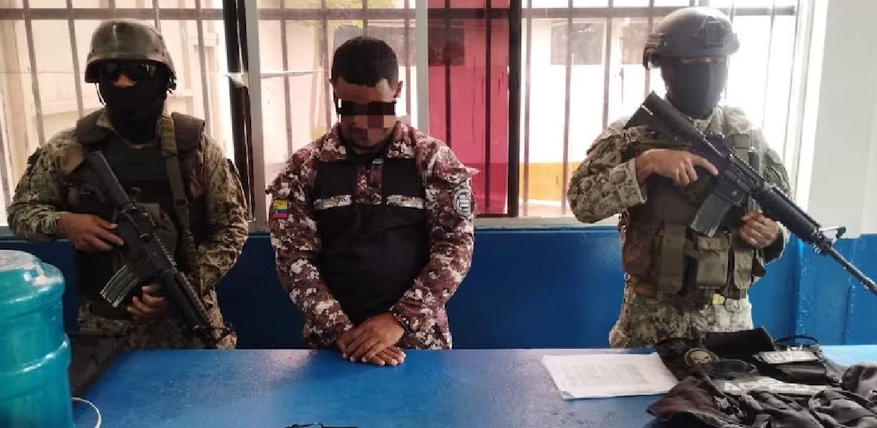 La Armada del Ecuador realizó la aprehensión de un agente de seguridad penitenciaria que tenía en su poder dos teléfonos celulares y un cargador.