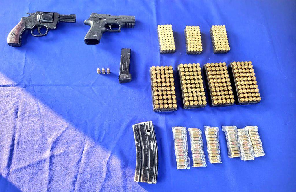 Entre los indicios que encontraron los uniformados, se encontraron: 2 armas de fuego, 419 cartuchos de diferentes calibres, 2 alimentadoras y 1 celular.
