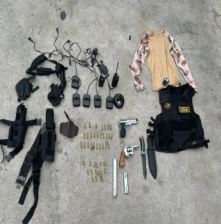 mentadoras calibre 9 mm, radios HF con cargadores, y equipo táctico que incluía pistoleras, chalecos antibalas y ropa de entrenamiento, detalló el informe.