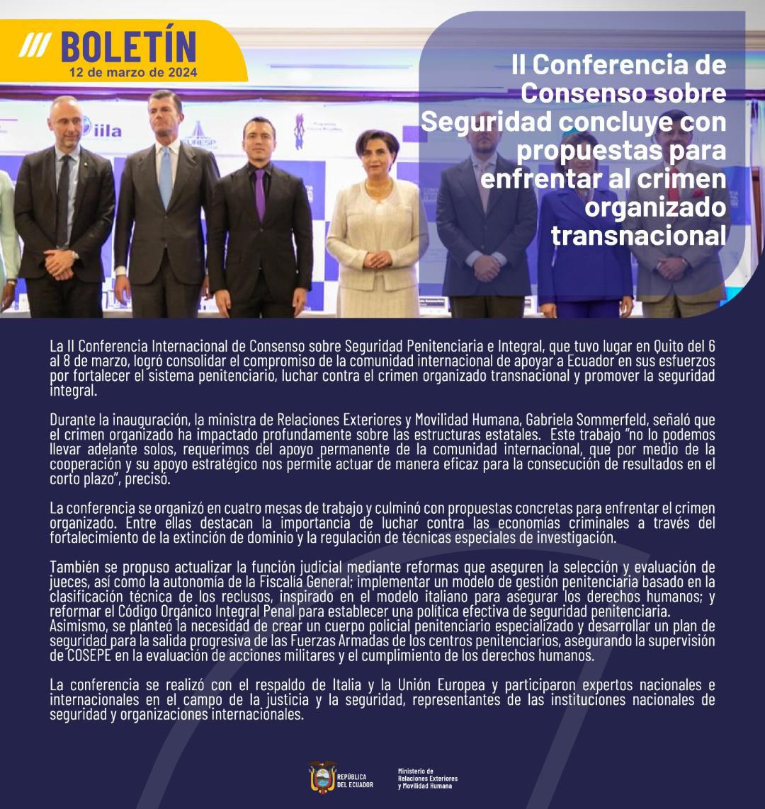 Ante un auditorio de expertos en materia de seguridad de aquí y del exterior; diplomáticos acreditados ante su Gobierno, funcionarios y académicos, el primer mandatario aseguró que grupos terroristas pretendieron desestabilizar el Gobierno y dar un golpe de Estado cuándo, a inicios de enero pasado, en Guayaquil, se tomaron TC Televisión.