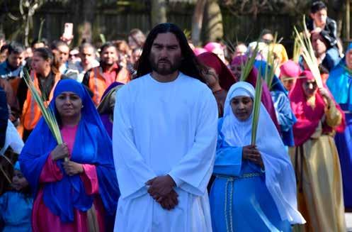 Semana Santa con una colorida procesión del Domingo de Ramos que incluyó personajes en vivo.