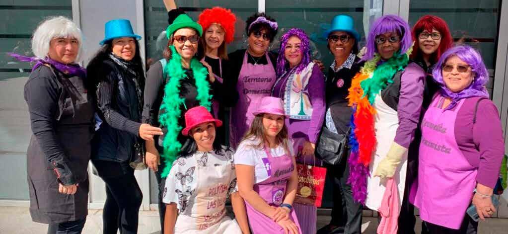 “Estas herramientas no se mueven solas, las mueven personas”, es su consigna este año. Al ritmo de cantos y bailes propios de la cultura latina, como la cumbia y la salsa, las migrantes que han encontrado en el empleo doméstico y cuidados de personas dependientes un sustento para ellas y sus familias en su país de origen, portan pelucas y gafas durante sus manifestaciones porque de esta forma, las que se encuentran en condición migratoria irregular, se sienten