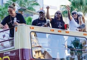 Hammon, en primer plano, y sus jugadoras, pasearon orgullosas por varias calles del céntrico Strip.