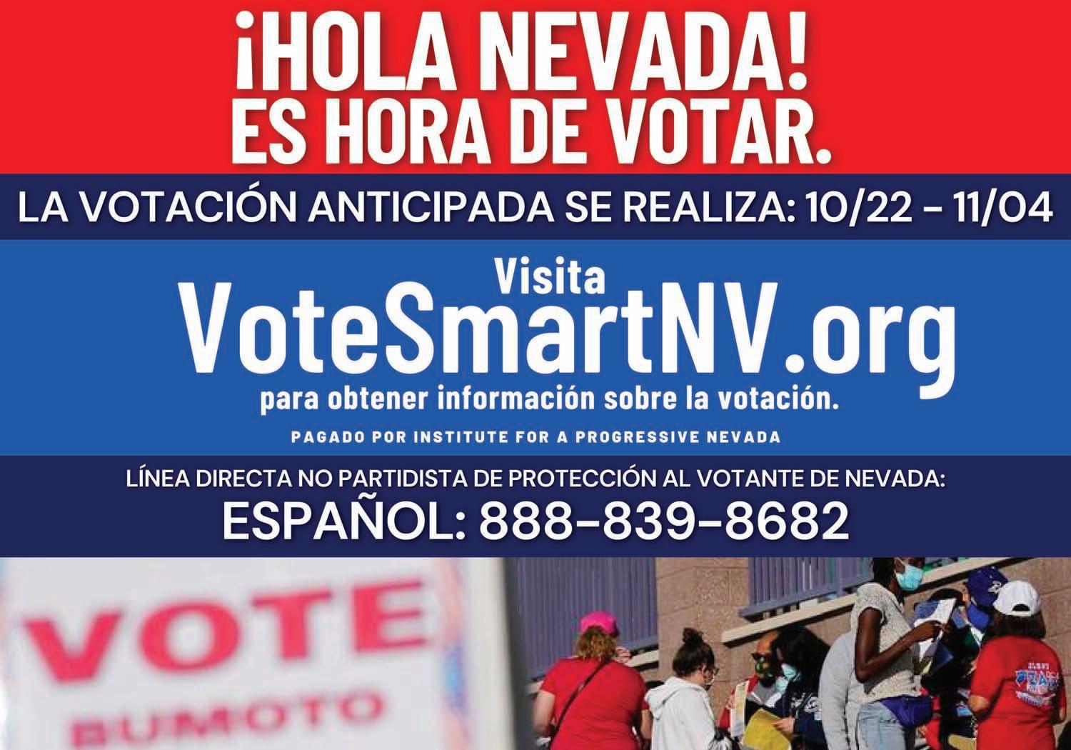 AVISO POR LA PRESENTE que el Registrador de Votantes del Condado de Clark, de Nevada llevará a cabo una inscripción de elec tores calificados para la Elección General que se llevará a cabo el martes 8 de noviembre de 2022.