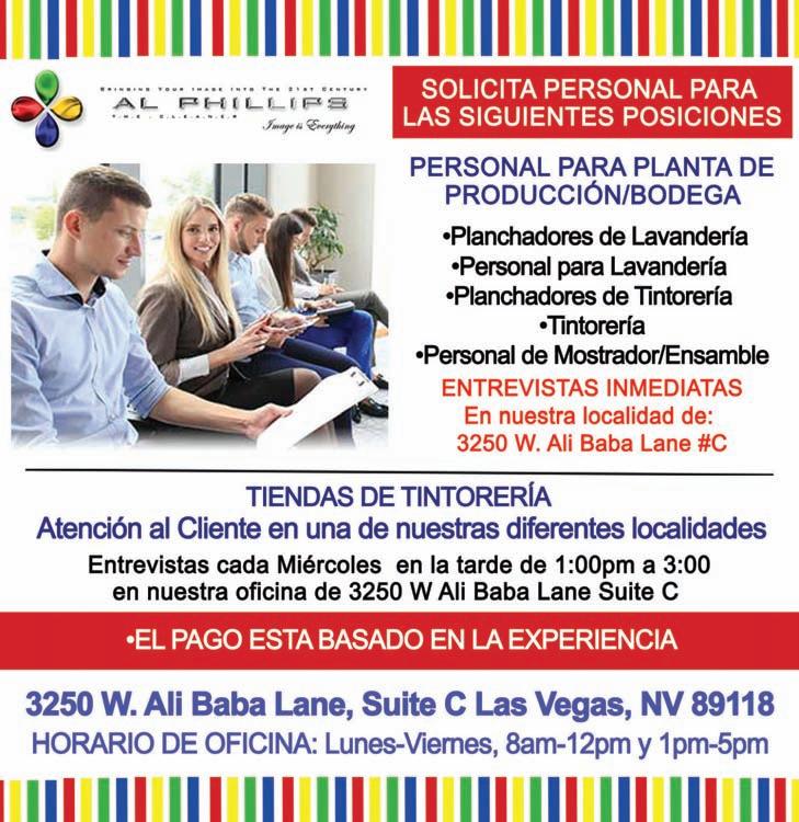 40 HRS. POR SEMANA $16 - $19 por hora. Aplicar lunesviernes, de 10 am - 4 pm en 4255 Wagon Trail, Las Vegas, 89118 (12/09)