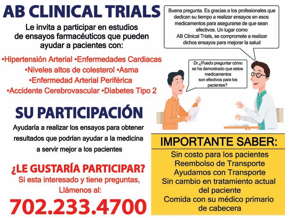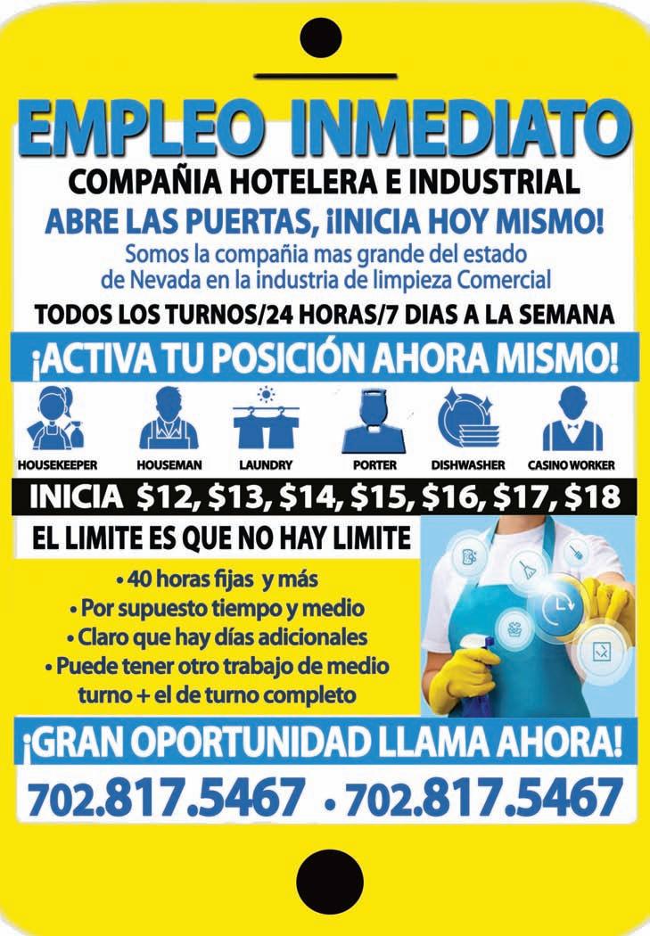 Para el miércoles 22 de este mes está prevista una Feria de Empleo en la Ciudad de North Las Vegas, se espera que los interesados acudan temprano, presenten su currículo lo más actualizado posible. Prestos a responder y hacer preguntas. Página 4
