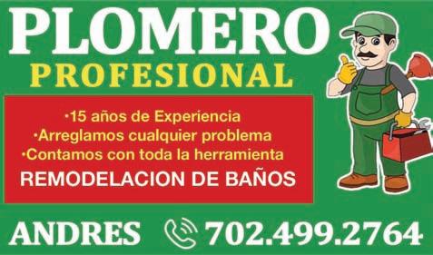 Con toda la herramienta y toda la experiencia de 23 años, para cualquier problema, remodelación de baños. Contamos con Jetter. Favor de hablar a Andrés al (702) 4992764. (08/23)