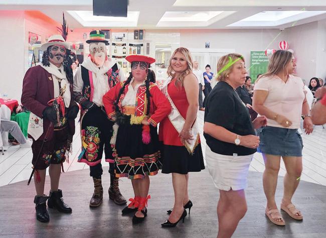 Los danzantes Kevin (en el rol de Chuto); Rossana Montes (Sicaina); Karla (Cuzqueña), junto a los hermanos Arturo y Luis Amaya (Chapetones), presentaron la espectacular danza originada en Jauja, desplegada en Perú y muchos otros países.