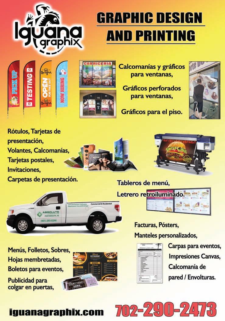 ¿Necesita gráficos para ventanas, magnéticos para sus vehículos, volantes, facturas, tarjetas de negocio? Tel. (702) 715-8911