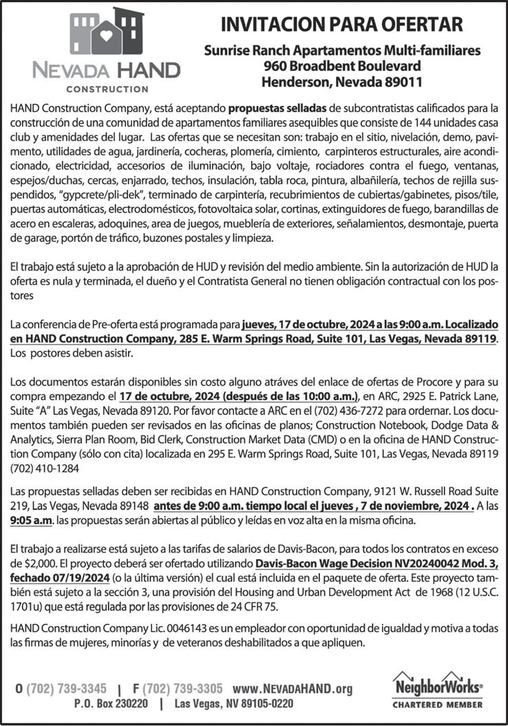 El East Las vegas Community Center será anfitrión de la XXIV Feria Binacional de Salud. Los asistentes podrán acceder a numerosos servicios, todos ellos gratuitos, además de información de primera mano y recursos comunitarios. Página 7