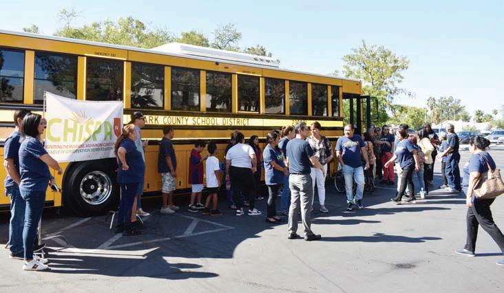 Padres, estudiantes, integrantes de Chispa Nevada e invitados tuvieron a bien recorrer el primer autobus escolar eléctrico en el valle. Los oradores se mostraron agradecidos e instaron al CCSD a aplicar por más recursos en favor de los niños. Página 4