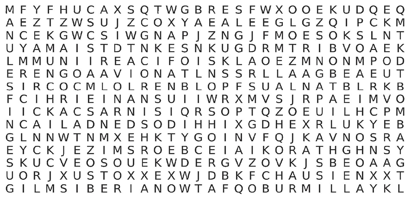 Completa los 6 cuadros hasta que cada columna hor zontal y vertical y cada caja de 3x3 contenga las letras sin repetir se