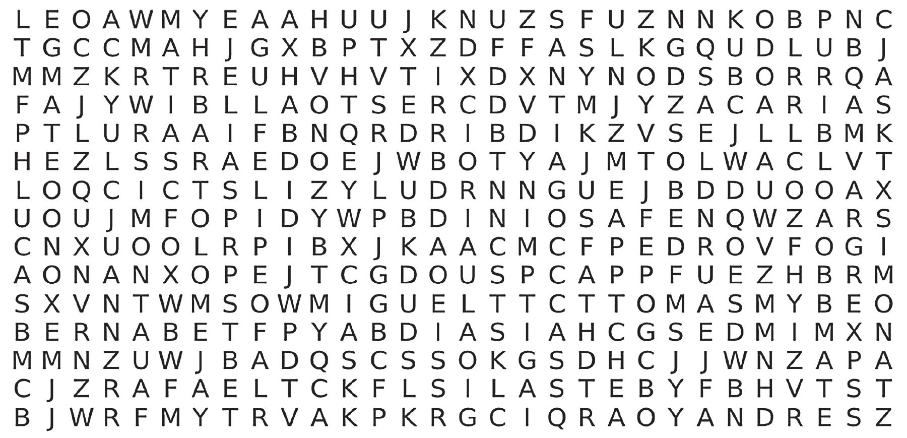 - SANTIAGO - ELIAS - FELIPE - VERONICA - BERNABE - JUAN - MIGUEL - RAFAEL - ANDRES - ABDIAS - MATIAS - SIMON - TOMAS