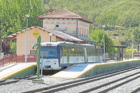 A la izquierda, la estación FEVE de Matallana de Torío; a la derecha, la Casa Consistorial.