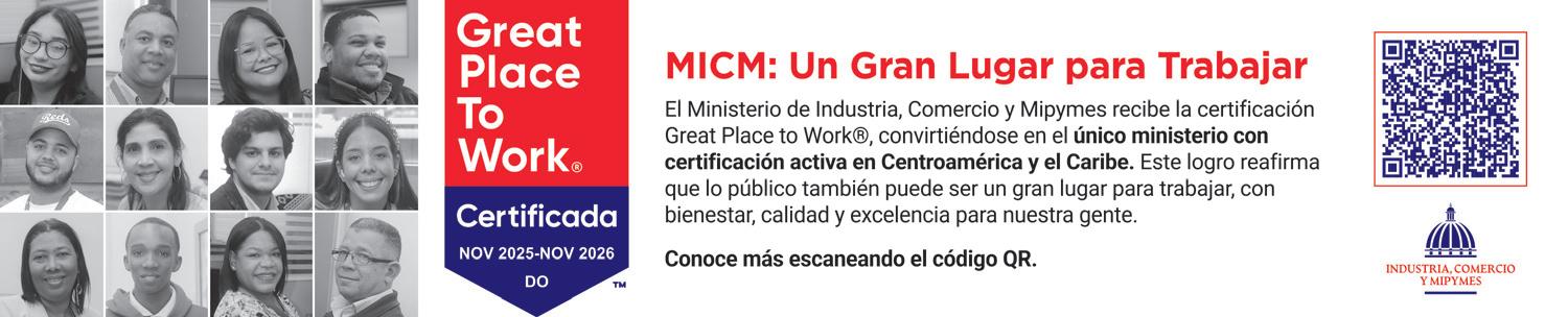 SANTO DOMINGO. - El Ministerio de Industria, Comercio y Mipymes (MICM) recibió la Certificación™ de Great Place to Work®, un reconocimiento que evalúa la cultura, la confianza y la experiencia laboral dentro de las organizaciones.