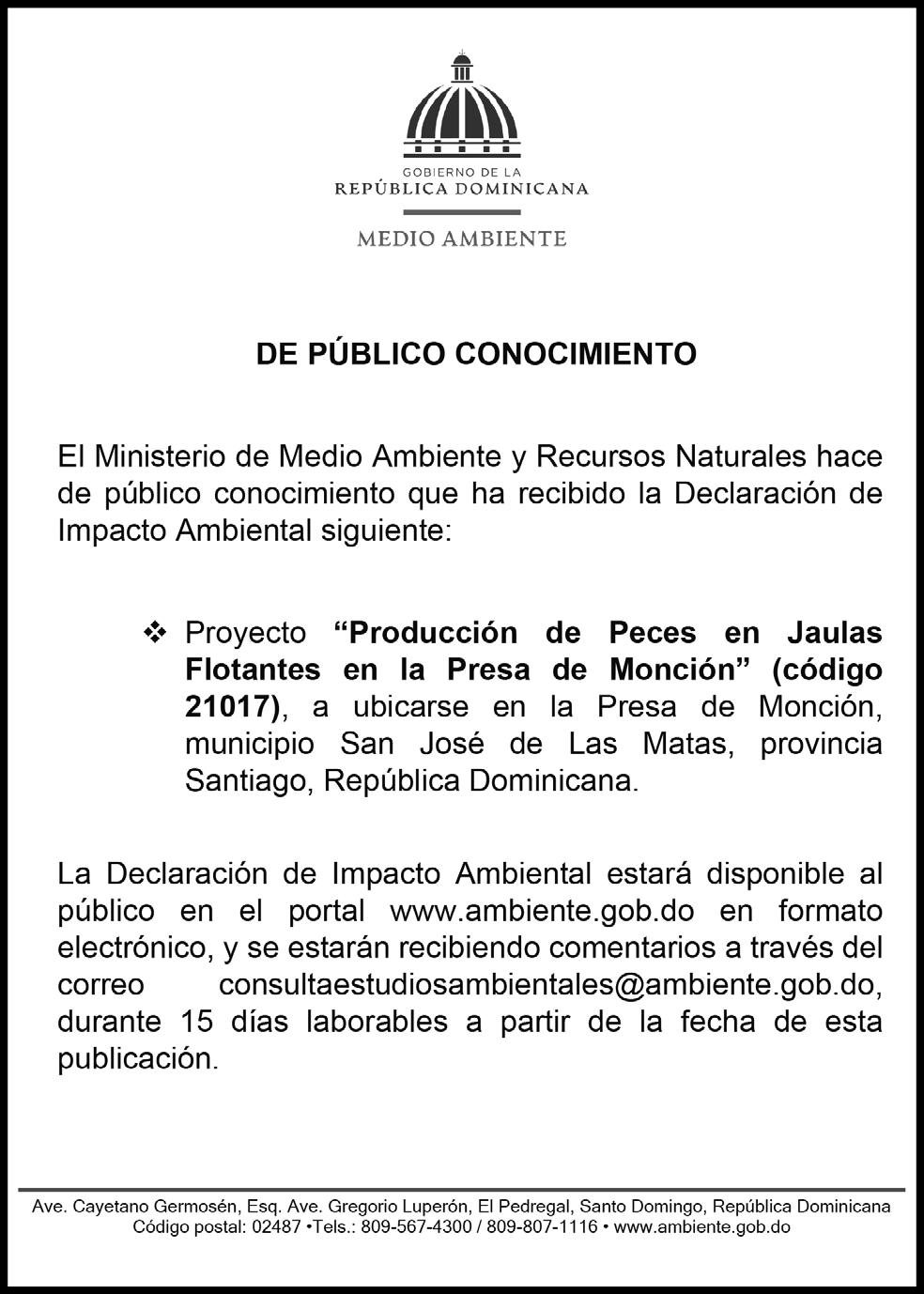 Editora El Nuevo Diario S.A. Avenida Francia No. 41, Esq. Rocco Cochia. Santo Domingo, R. D. Tel.: 809-687-7450