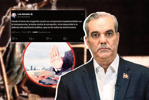 Abinader sostuvo que la actuación del Gobierno en este caso evidencia, una vez más, que su gestión no tolera la impunidad y que cualquier funcionario o particular que afecte los intereses del Estado deberá enfrentar la justicia. El presidente Abinader concluyó enviando un mensaje de tranquilidad a la ciudadanía, reiterando que su administración mantendrá una postura firme de vigilancia, prevención y sanción, garantizando que cada señal de corrupción sea investiga da y cada responsable, so metido a la ley.