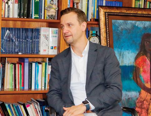 SANTO DOMINGO.- El director del Programa Regional Partidos Políticos y Democracia de la Fundación Konrad Adenauer (KAS), Henning Suhr, valoró la presencia que tiene República Dominicana en los eventos sobre democracia, propios de la entidad. Durante una visita de cortesía a Persio Maldonado Sánchez, director general de El Nuevo Diario, Suhr aseguró que, pese a la fundación tener más de 20 años fuera del país, RD es una voz importante en dichos eventos y juega un papel muy constructivo también en el debate, “y por supuesto, como la economía más grande del Caribe, también tiene un rol importante” . Asimismo, destacó que, aunque estuvieron en el país con el objetivo de participar en la Cumbre de Las Américas, la cual fue pospuesta para 2026, aprovecharon la visita para realizar un conversatorio sobre la situación de la democracia en la región. Suhr afirmó que necesitarían un presupuesto para República Dominicana, pues “lamentablemente, por la presión presupuestaria en Alemania, no contamos con los fondos para ampliar nuestras actividades” . (FOTO: ROBINSON QUEZADA) P.09
