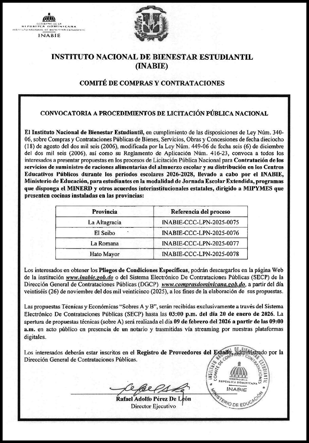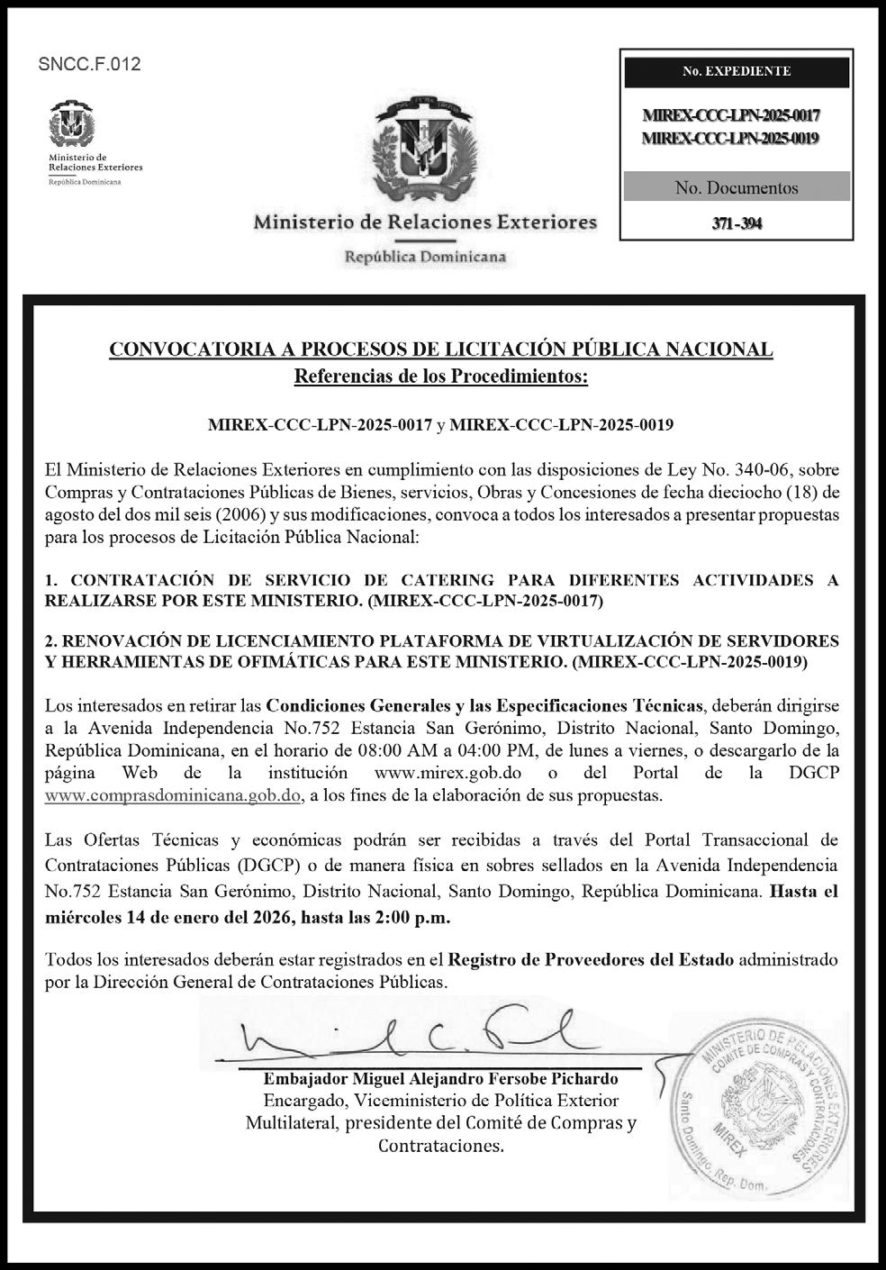SANTO DOMINGO. - La Dirección de Compras y Contrataciones Públicas (DGCP) emitió la Resolución RIC-0133-2025 mediante la cual anula el procedimiento de comparación de precios
