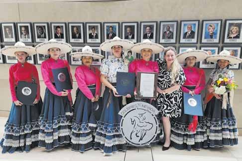 Yudit Pinedo (quinta desde la izquierda), junto a las chicas que forman parte de la ‘Escaramuza Charra Colibríes de Nevada’. Un galardón bien ganado. La acompaña la chilena Carolina Ávila.