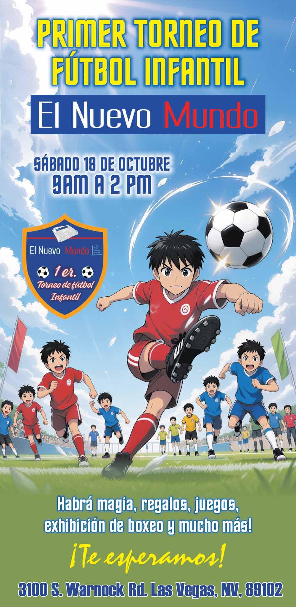 Con ocho equipos de categoría infantil se jugará este sábado 18 de octubre el primer torneo que llevará el nombre de este semanario, en las canchas localizadas en el 3100 Warnock Rd., Las Vegas, Nevada 90102.