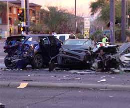 y comenzó a volcar, expulsando al conductor y al pasajero a la carretera. El Mercedes Benz Clase C se detuvo sobre su techo al sur de la intersección. El Mercedes Benz Clase GLC se detuvo cerca del área de la colisión inicial”.