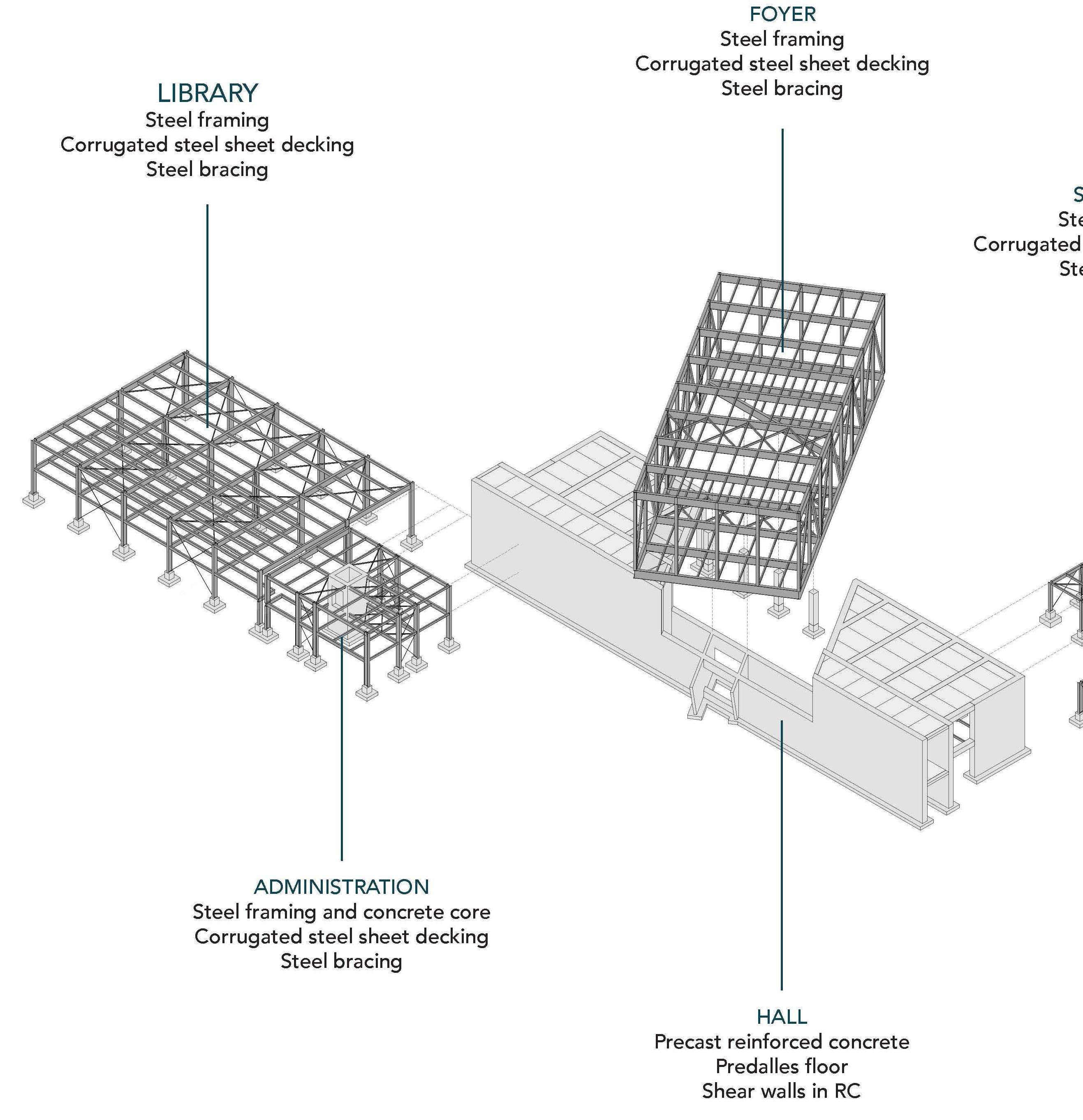 La conception du bâtiment a été réalisée jusqu’aux détails constructifs et structurels, et des études énergétiques et de cycle de vie ont été menées. J’ai en particulier imaginé la structure du bâtiment et réalisé des vérifications de résistance structurelle sur les éléments les plus significatifs.