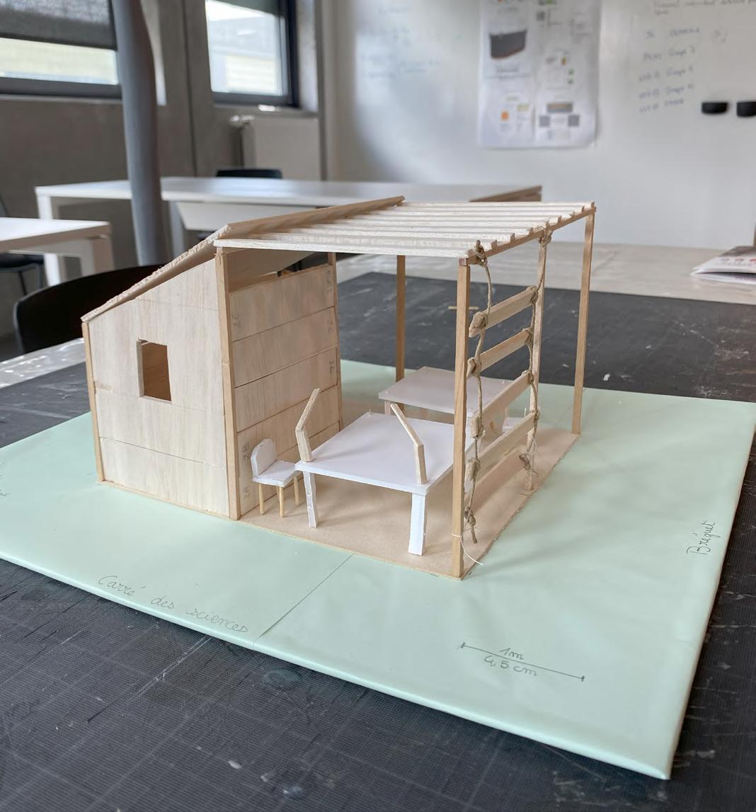 Dans le cadre du pôle projet de CentraleSupélec, nous avons proposé et conçu un projet de construction d’un espace de travail en extérieur pour le campus de l’école, destiné aux étudiants. La structure en bois a été imaginée pour répondre aux besoins des étudiants (ouverture sur l’extérieur, protection du vent et de la pluie…) et adaptée pour répondre au cahier des charges de l’école.