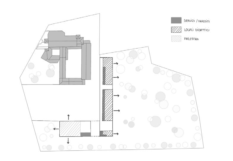 Pour la conception d’une nouvelle école et d’un nouveau gymnase dans la ville de Caravaggio, plusieurs pistes et concepts ont été explorés afin de s’intégrer au mieux avec l’héritage du lieu, notamment la présence adjacente d’un monastère et d’une église.