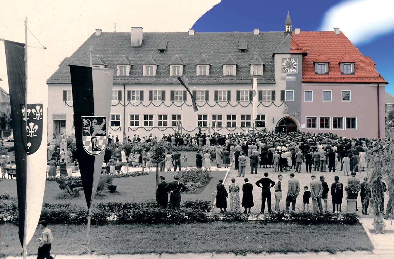 Maxhütter Rathaus-Verschmelzung „damals und heute“. Ausschnitt der Stadterhebung am 4. Juli 1953.