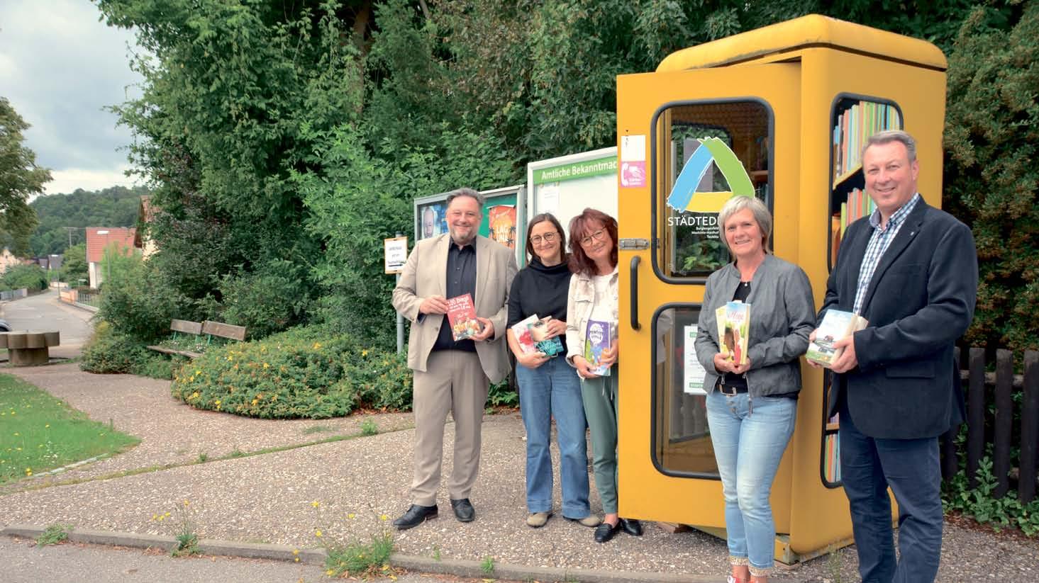 Freuen sich auf den Start: IT-Verantwortlicher Sebastian Schelchshorn, Ariane Schneider (SWS), Bürgerbüro-Leiter Wolfgang Weiß, Bürgermeister Thomas Gesche und Johannes Bawidamann (SWS) mit Veronika Koisegg, eine von drei künftigen Ansprechpartnerinnen im virtuellen Bürgerbüro. Foto: Ulrike Pelikan-Roßmann