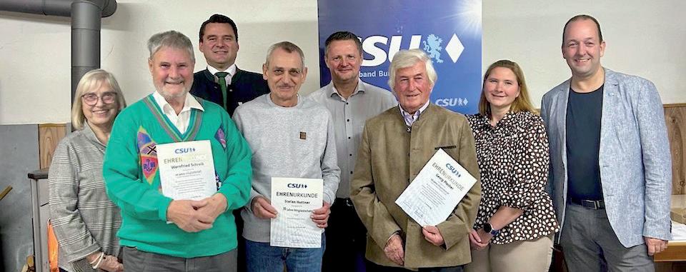 Auf dem Bild hi. Reihe v.l.: Bürgermeister Josef Schindler, Vorsitzender Tobias Lehner, Bianca Mulzer, Theresa Mulzer, Gauehrenvorsitzender Peter Kurzwart, 2. Vorsitzender Willi Bauer; vo. Reihe v.l.: Josef Ganslmeier, Ehrenmitglied