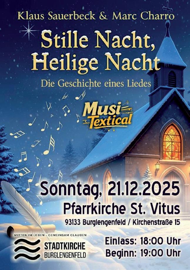 In dieser Ausgabe - der traditionellen Weihnachtsausgabe - finden Sie natürlich wieder zahlreiche Meldungen aus den Gemeinden, Informationen aus der lokalen Vereinsund Geschäftswelt, zur Kommunalwahl 2026, viele Veranstaltungs-Highlights sowie Weihnachts- und Neujahrsgrüße.
