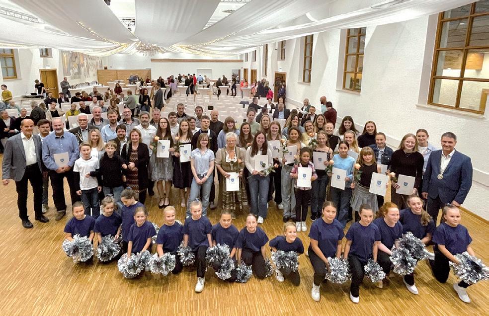 Deutsche und Bayerische Meister, Oberpfalz- und Bezirksmeister, Bezirkspokalsieger, Aufstiege in hochklassige Ligen ebenso wie Medaillen bei nationalen und internationalen Olympischen Winterspielen und Teilnahmen an internationalen Wettbewerben in den verschiedensten Sportarten wurden mit der Sportehrennadel des Marktes Regenstauf oder einem Sachpreis geehrt. So gab es Sportehrennadeln oder Sachpreise für Sportler der Vereine SG, der Karateabteilung und der Abteilung Eisstock des SV Diesenbach, sowie von der Volleyballund der Tischtennisabteilung des TB/ASV Regenstauf. Ohne Verein gewann Felix Kulisch bei den Winterspielen Special Olympics, Langlauf National, in Oberhof 2024 die Goldmedaille sowie darüber hinaus Silber und Bronze bei den Special Olympics World Games 2025 in Turin. Mit der Ehrenmedaille des Marktes Regenstauf für besondere schulische Leistungen wurde Katharina Bleicher ausgezeichnet, die an der Realschule Regenstauf die Mittlere Reife mit der Traumnote 1,0 abschloss. Alle Geehrten durften sich nach dem offiziellen Teil der Ehrung in