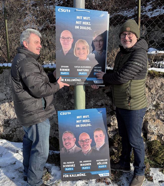 KALLMÜNZ (sr). „Eine intensive Vorbereitungsphase liegt hinter uns“, blickt Johann Rinner, Ortsvorsitzender der CSU und Anführer der Liste für die Kommunalwahl, laut einer Pressemitteilung zurück: In den vergangenen Wochen wurden Inhalte erarbeitet, Flyer gestaltet und Plakate mit viel Engagement entworfen. Nun beginnt die entscheidende Phase des Wahlkampfs.