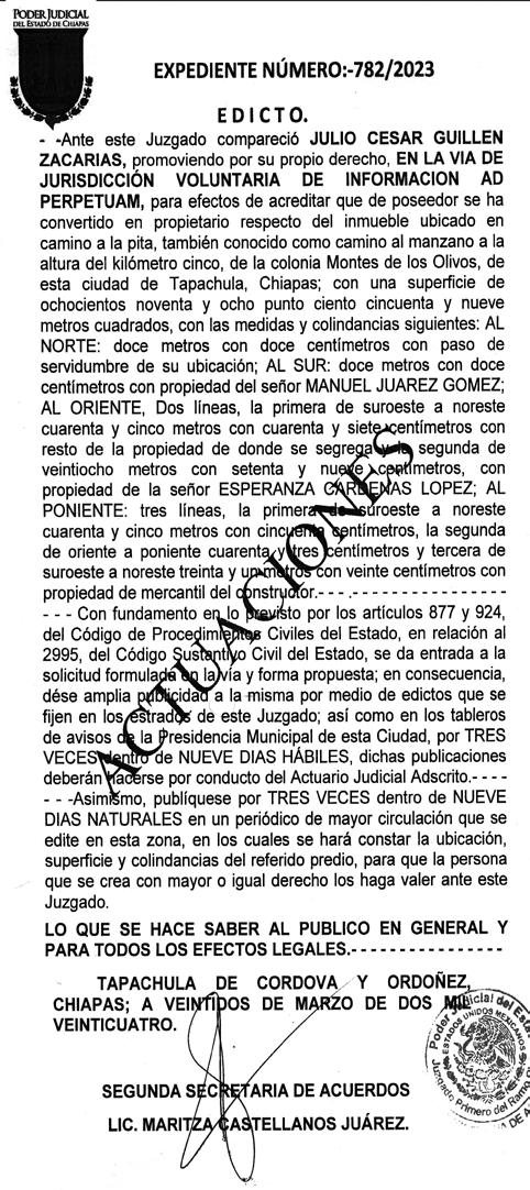 de la Frontera. A partir de ese momento, el candidato al Senado pidió al Instituto Nacional Electoral (INE) seguridad para que pudiera moverse por el estado de Chiapas. El domingo, el b, al gobierno del estado de Chiapas, Eduardo Ramírez Aguilar, llamó candidatas de la alianza PAN, PRI y PRD, Olga Luz Espinosa y de Movimiento Ciudadano, Karla Irasema Muñoz Balanzar, para que suscriban un pacto de civilidad, para que la ciudadanía pueda salir a votar sin miedo el 2 de junio. Sun
