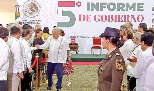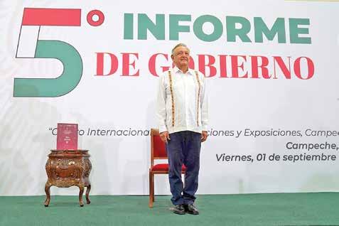 Campeche.- La principal proclama del presidente Andrés Manuel López Obrador en su quinto informe de gobierno fue: “Arriba los de abajo, que no significa necesariamente abajo los de arriba, sino abajo los privilegios” y lo hizo entre sus funcionarios de gabinete legal, ampliado, gobernadores, funcionarios de Campeche, una cúpula empresarial, y desde afuera, el pueblo.