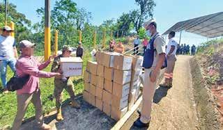 Los apoyos fueron proporcionados a las poblaciones circundantes al municipio de Pichucalco, Chis., en coordinación con Protección Civil y la Secretaría de Salud del Estado de Chiapas, entregando un total 5,500 despensas, 16,624 botellas de agua para consumo